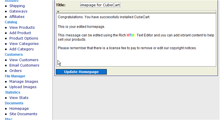 This is the end of the tutorial. You should now know how to configure your home page in CubeCart