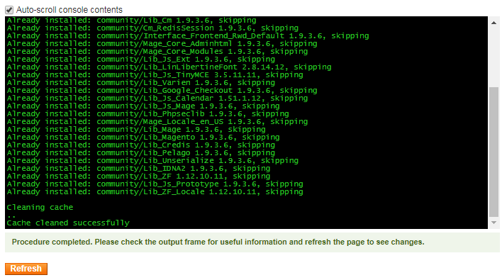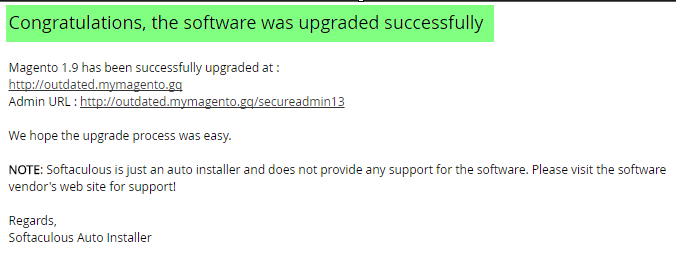 Allow about a minute for Softaculous to upgrade Magento: