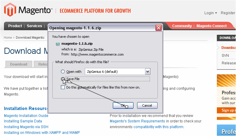1) For this tutorial, you will need to go to http://www.magentocommerce.com in your web browser