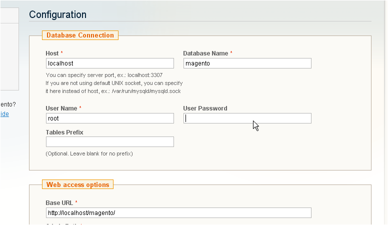 The host, database name, and username are entered by default. If they are different than the information shown, you can change them now