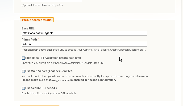 This is where you can set options like the base URL, administrator path, and secure URLs