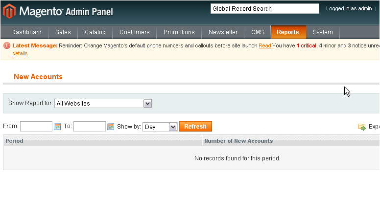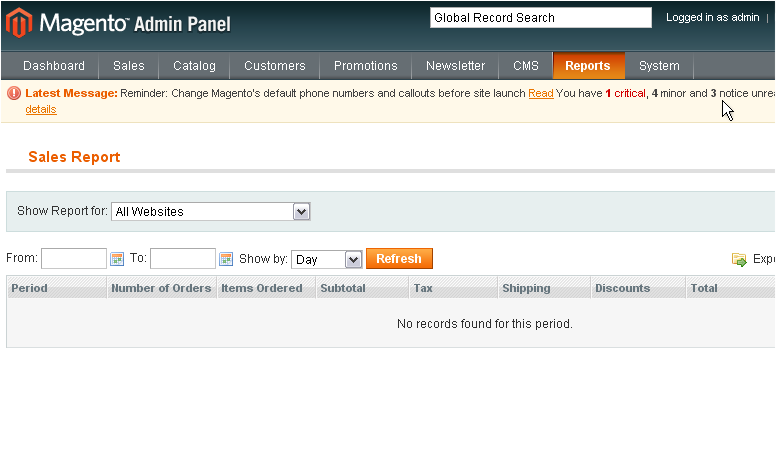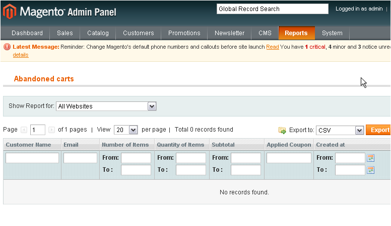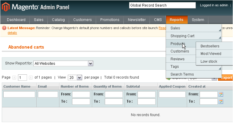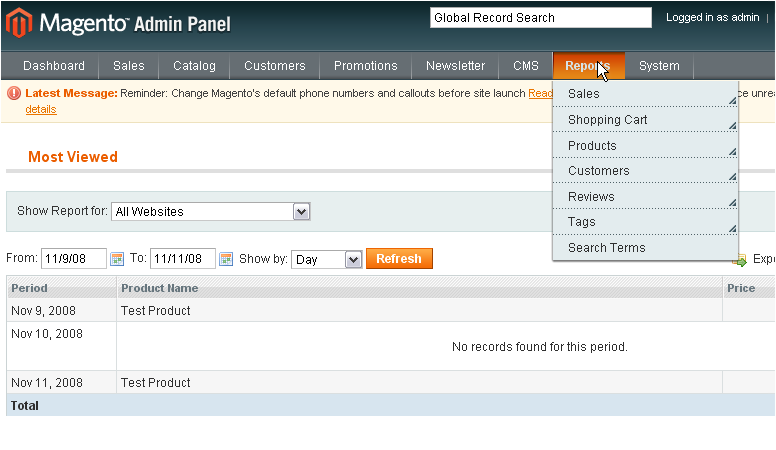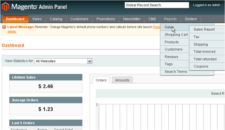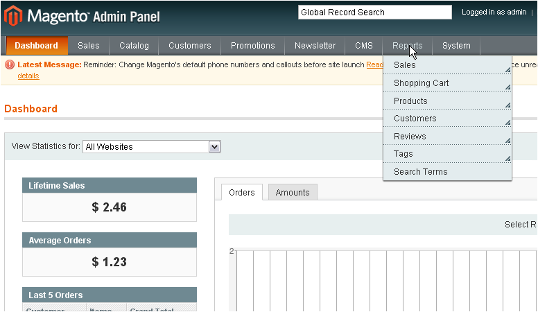 This tutorial will show you how to view reports in Magento Commerce, and assumes you're already logged in to Magento