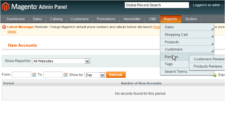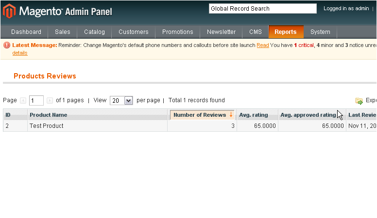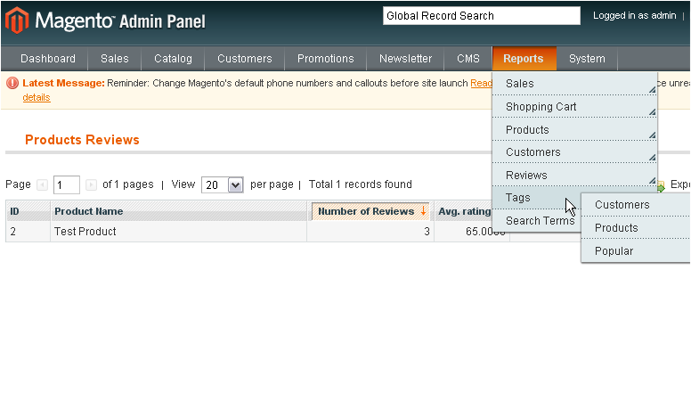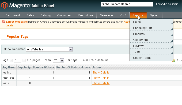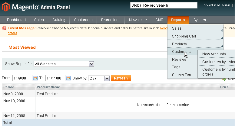 This is the end of the tutorial. You now know how to view reports in Magento Commerce