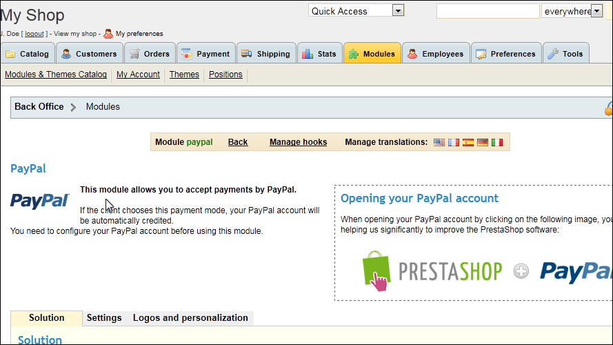 PrestaShop allows you to accept many different payment methods. Let's see how to setup PayPal.