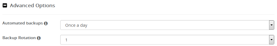 Advanced Options: the Advanced Options section allows you to setup the Database Name and Table Prefix, as well as the automated application backups.
