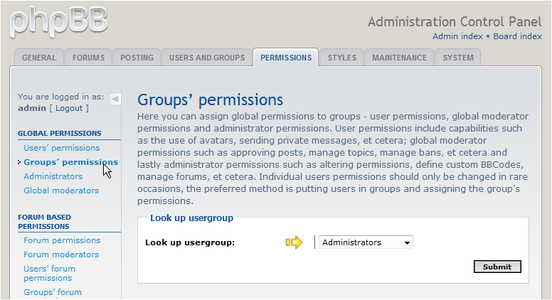 How to manage group permissions in phpBB
