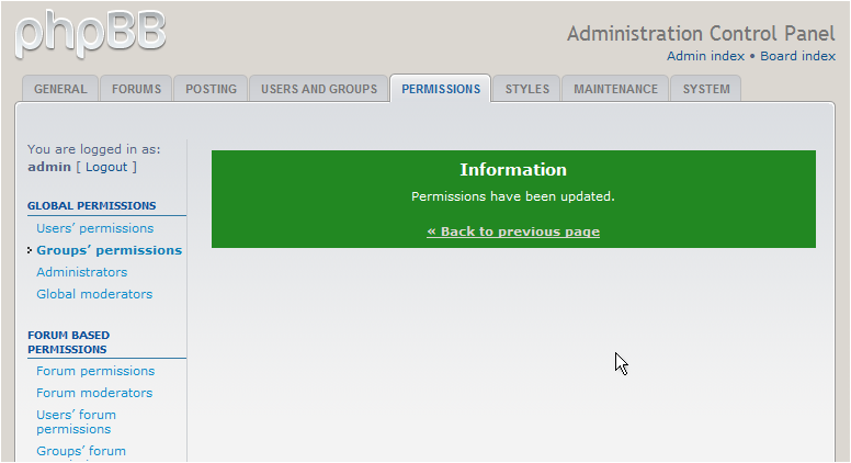 This is the end of the tutorial. You now know how to manage group permissions in phpBB