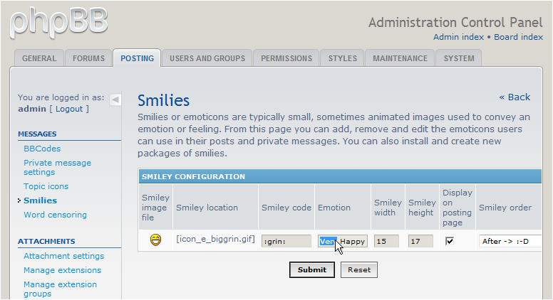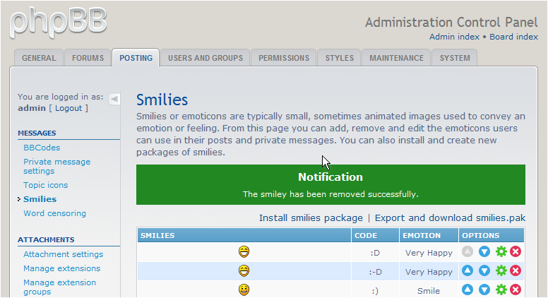 This is the end of the tutorial. You now know how to manage smilies in phpBB
