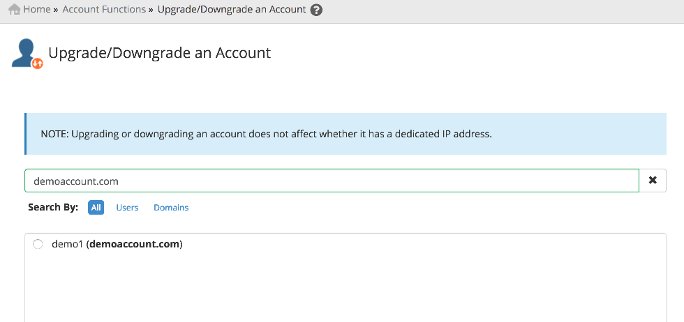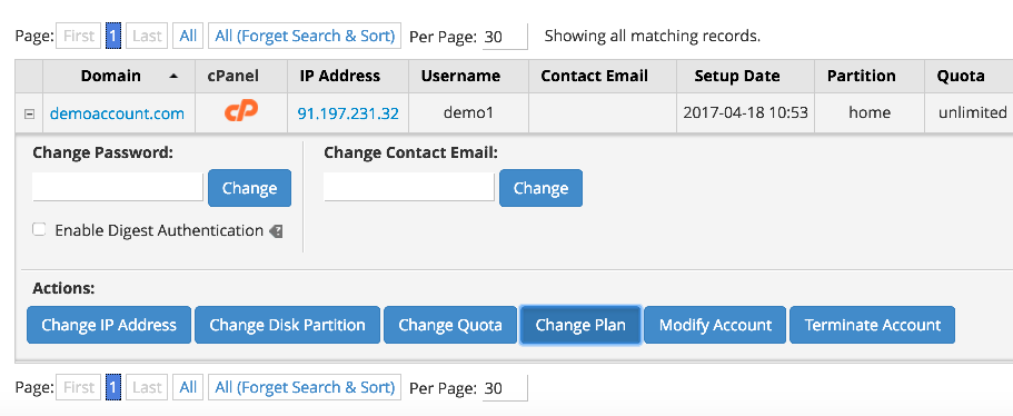 This is the end of the tutorial. You now know how to choose a different package for an account in WHM.