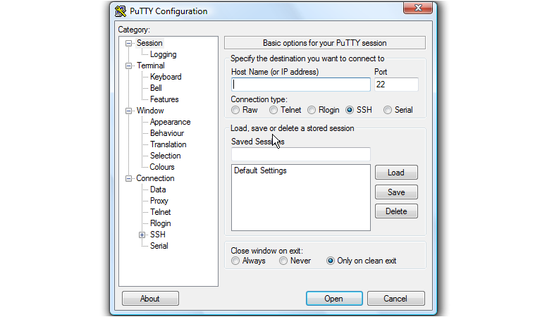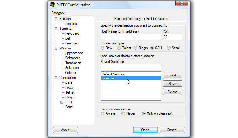 6) Now let's say we want to load a saved connection setting... let's open PuTTY again
